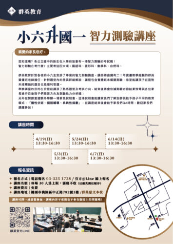 📣小六升國一免費智力測驗講座